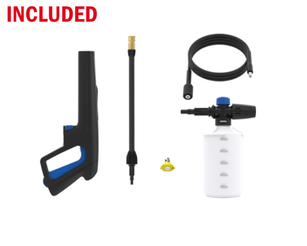 - Includes trigger gun, extension lance with quick-connector with 15° nozzle, 20ft. super soft HP hose and garden hose adapter